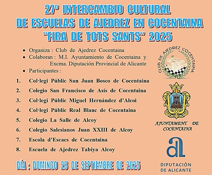 ¡ 27º Intercambio Cultural de Escuelas de Ajedrez en Cocentaina “Fira de Tots Sants” 2025 ! Torneo escolar por equipos